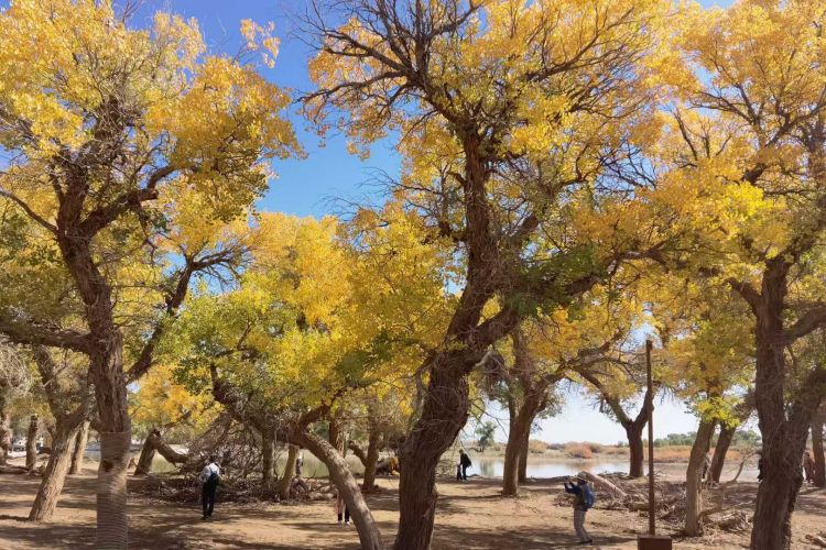 早起,酒店用早餐后,乘车前往金塔,大约60KM,需1小时车程。亮点:金塔胡杨林(含区间车20元/人,游览约2小时)粗壮、沧桑的主干掩映在金碧辉煌的枝叶之中,满目的赤橙黄绿与盈盈秋水互相映衬,烘托出一幅“碧云天、黄叶地、秋色连波、波上寒烟翠”的美妙画卷。金塔沙漠胡杨林景区,是位于古丝绸之路中段北侧、甘肃省金塔县城西北8公里处,由胡杨林-金波湖核心游览区、沙枣林观光区、瀚海红柳林保育区、沙漠娱乐体验区和沙漠芦苇迷宫区五个功能区组成,占地面积达8万余亩,景区内分布着西北地区最大的"化石级植物"万亩胡杨林,极具观赏价值。