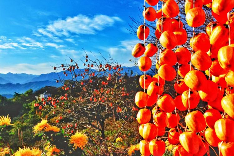 前往走进歙北上丰乡花果山的姬川山峦秀美,层林尽染漫山遍野的柿子挂满枝头恰似一只只红灯笼把这里装扮得分外美丽;当地人俗称【姬公尖(鸡公尖)】,每年10-11月正是灯笼柿成熟的季节村民有的忙着采柿子往家里运有的在削柿皮、拴柿陀、制柿饼充斥着丰收的喜悦,热闹非凡;行程结束后返程回到温馨的家。