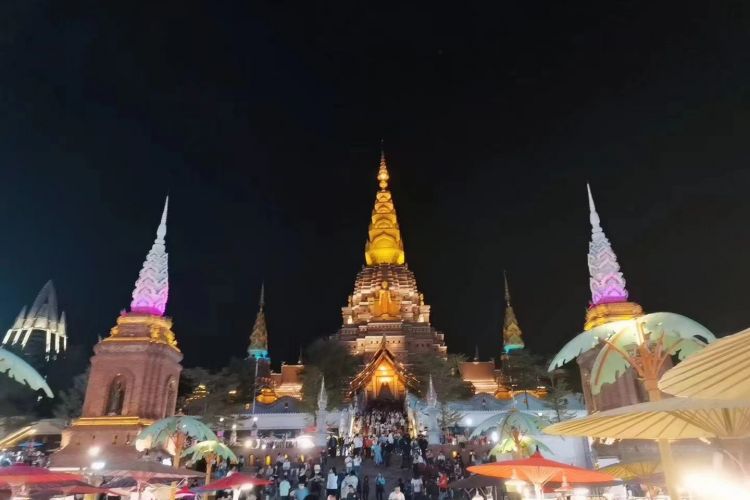 西双版纳【告庄西双景】,网红打卡圣地【西双版纳地标性建筑——景洪市大金塔寺】景洪市大金塔寺是西双版纳地标性建筑,塔高66.6米,属于南传佛教金刚宝座塔,景洪大金塔,也称缅甸大金塔, 以大塔为核心,象征五景之一景洪。寓意一江连六国(中国、泰国、缅甸、越南、老挝、柬埔寨)以及星光夜市及赶摆夜市所构成的大金三角最具特色、最具规模夜市集群,全年欢乐不打烊,绝对给你一个超乎想象的、梦幻般的西双版纳!
