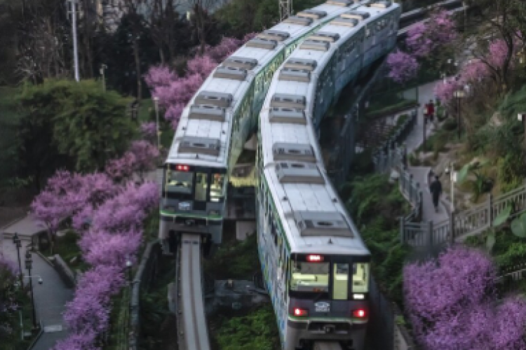后乘车前往抵达轻轨穿墙网红打卡景点【李子坝轻轨观景台】(车程约20分钟)(游览时间15分钟)您可欣赏轻轨2号线的李子坝站每天都会上演轻轨穿楼越壑,空中飞驰而过的神奇一幕。后亲身体验乘坐轻轨【李子坝站】----中国国内第一座与商住楼共建共存的跨座式单轨高架车站,至临江门1号出口。